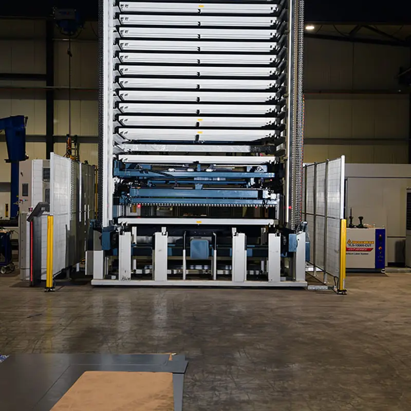 De Rapid Tower van Hollandsteel is het laad-lossysteem wat gebruikt wordt om onze vlakbedlasers onafhankelijk en efficiënt te laten draaien. De Rapid Tower zorgt voor automatisch transport van het bewerkte en onbewerkte plaatwerk voor de vlakbedlaser snijmachines.