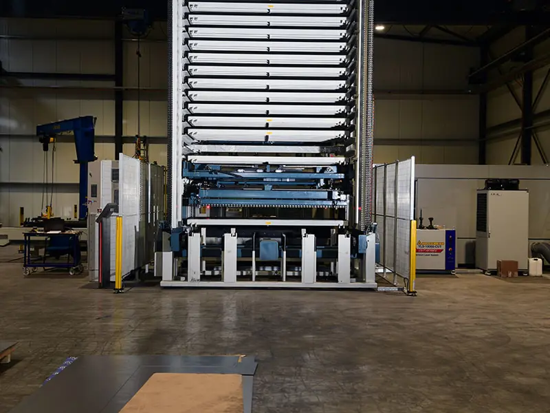De Rapid Tower van Hollandsteel is het laad-lossysteem wat gebruikt wordt om onze vlakbedlasers onafhankelijk en efficiënt te laten draaien. De toren zorgt voor automatisch transport van het bewerkte en onbewerkte plaatwerk voor de vlakbedlaser snijmachines. Door deze toren kan hollandsteel 24 uur 7 dagen in de week draaien en daarmee ook grote productie-aantallen snel verwerken. Zo zijn we er voor iedereen: je kunt bij ons terecht voor 1 stuk tot grote aantallen en series.